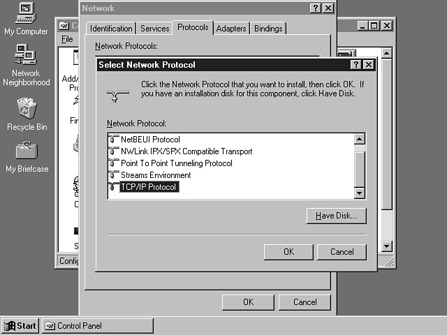 You can install TCP/IP during the NT Server installation process or add it later. In either case, the installation process is essentially identical. The follow set of procedures specifically details how to install TCP/IP on an existing NT Server.